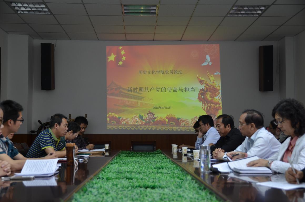在接下来的党员论坛上,师生党员围绕“新时期共产党员的使命与担当”这一主题,各抒己见,交流思想,畅谈体会认识,气氛轻松活跃。中国近现代史教研室主任王守谦博士结合多年的教学经验,回顾了其作为一名教师党员在授课中如何引导学生正确看待和分析党的历史的做法。2012级学生党员娄钰晗从理论和实践两方面详述了对当代大学生党员的责任与担当的认识,认为青年学生党员要勇担责任,不辱使命,不负先辈对新青年的厚望。与会党员的踊跃精彩发言,赢得了大家的阵阵掌声。