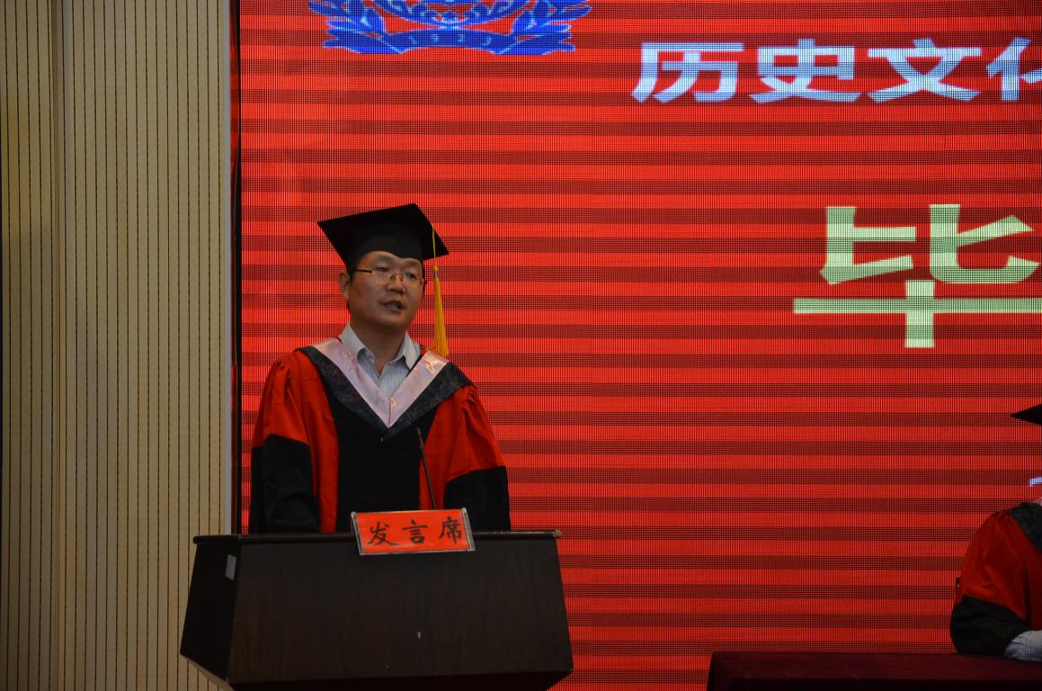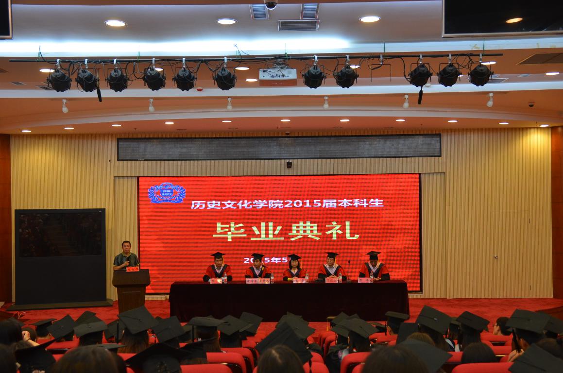 感恩无悔过去,怀抱精彩明天。5月29日,我院2015届本科生毕业典礼在我校东区马克思主义教学平台隆重举行。院党委书记王霞,院长王记录,副书记康海军,副院长李峰、张壬,中国史系主任王守谦、教授赵振,文化产业管理系主任王盛恩,团委书记、2011级辅导员张利兵以及2015届314名本科生共同参加了典礼。典礼由党委副书记康海军主持。