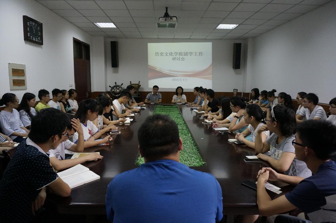 7月5日中午,我院在学院楼二楼会议室举办了团学工作研讨会。到场的有学院党委书记王霞,党委副书记康海军、团委书记张利兵和我院30余名在团学任职的学生骨干代表。