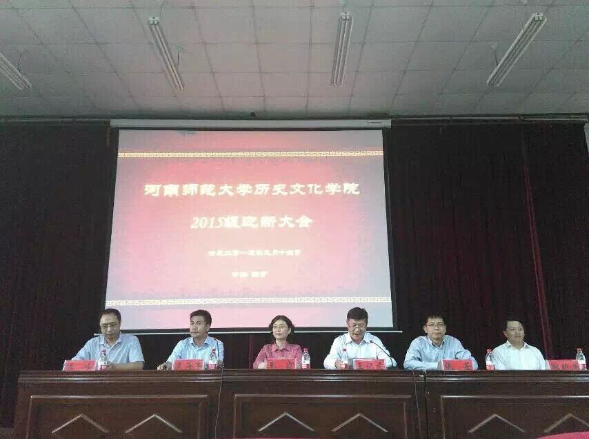 9月14号下午5:00,历史文化学院在西校区万人餐厅三楼多功能报告厅举行2015级迎新大会。我院党委书记王霞,院长王记录,党委副书记康海军,副院长张壬、副院长李峰、副院长鞠明库及各年级辅导员、专业课教师代表出席此次大会。2015级新生本科374人及研究生39人参加此次活动。大会由院党委副书记康海军老师主持。