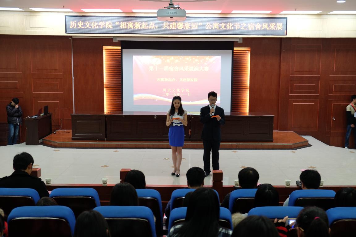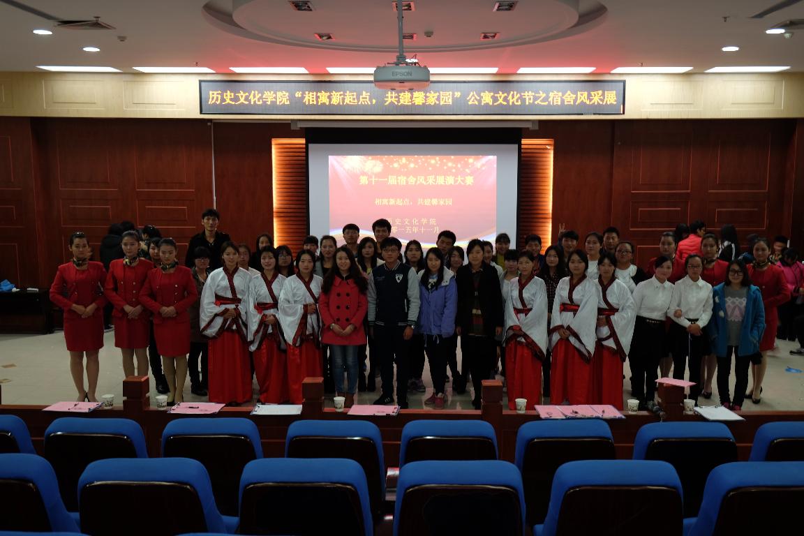 11月15日晚7点30分,历史文化学院“相寓新起点,共建馨家园”公寓文化节之宿舍风采展在东区模拟法庭如期举行。院党委副书记康海军,团委负责老师原方,2015级辅导员吉喆、马田园带领2015级历史和世界史专业全体同学参与此次活动。