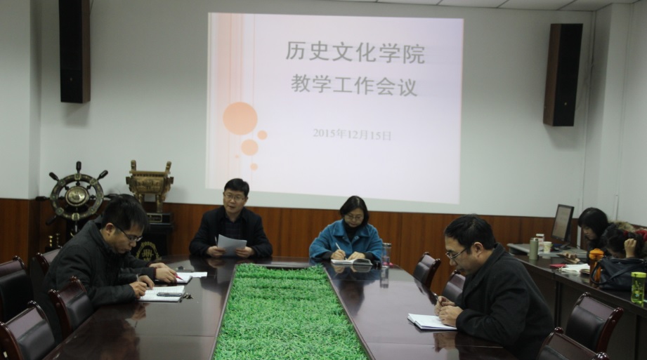 20151215日下午,历史文化学院教学工作会议在学院二楼小会议室举行,会议由王霞书记主持,全院老师出席会议。
