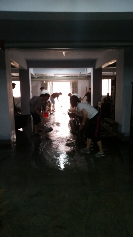 在这次特大暴雨中,无论是我院接受学校统一安排承担家属院18号楼地下室积水的抽取任务,还是对收藏有我院农耕农具地下室大量积水的处理,院党政领导都身先士卒,院防汛抢险突击队队员除个别因被水困在家中,无法外出外悉数到场,部分学生党员、干部也参与其中,用潜水泵抽水,用各种方式人工作业把浅水处理完。这支由年轻博士、共产党员组成的抢险突击队,干起体力活来也有板有眼,毫不含糊,发挥了党员干部先锋带头作用和青年党员关键时刻冲得上的干劲。
