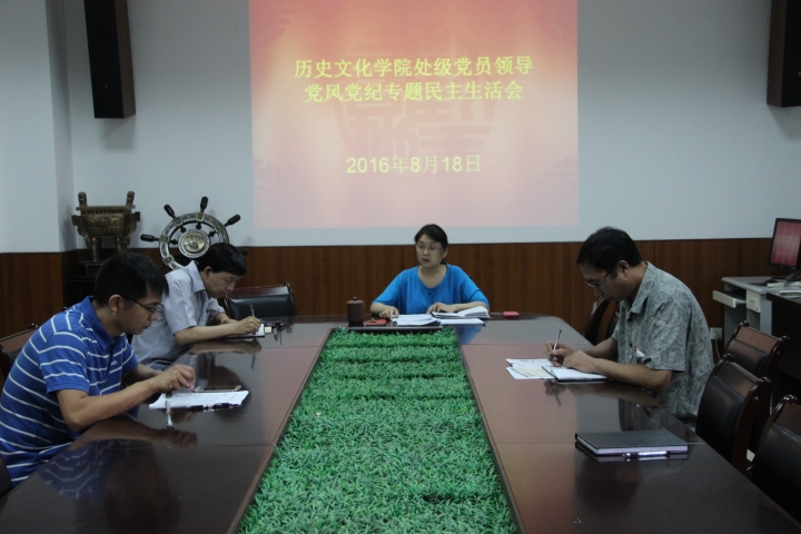 8月18日上午,我院党员处级领导党风党纪专题民主生活会在学院205会议室召开。院党员处级领导王霞、巨永明、张壬、李峰参加会议。院党委书记王霞主持会议。