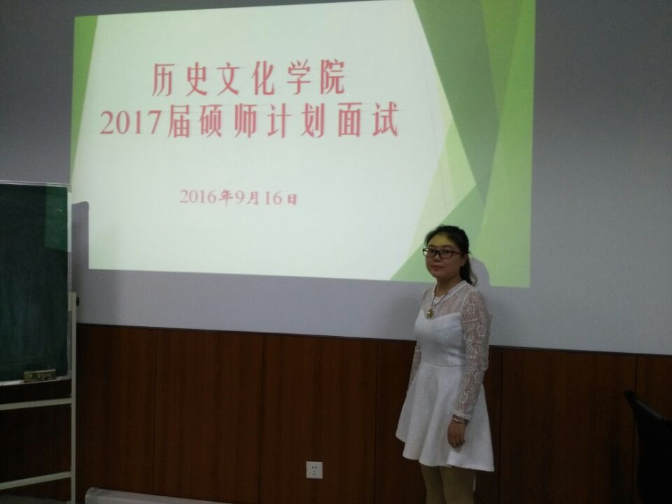 2016年9月16日上午,历史文化学院2017届“硕师计划”推免面试在学院205小会议室举行,历史文化学院院长巨永明教授等6位老师担任评委,2013级历史学专业的10名同学报名参加面试。