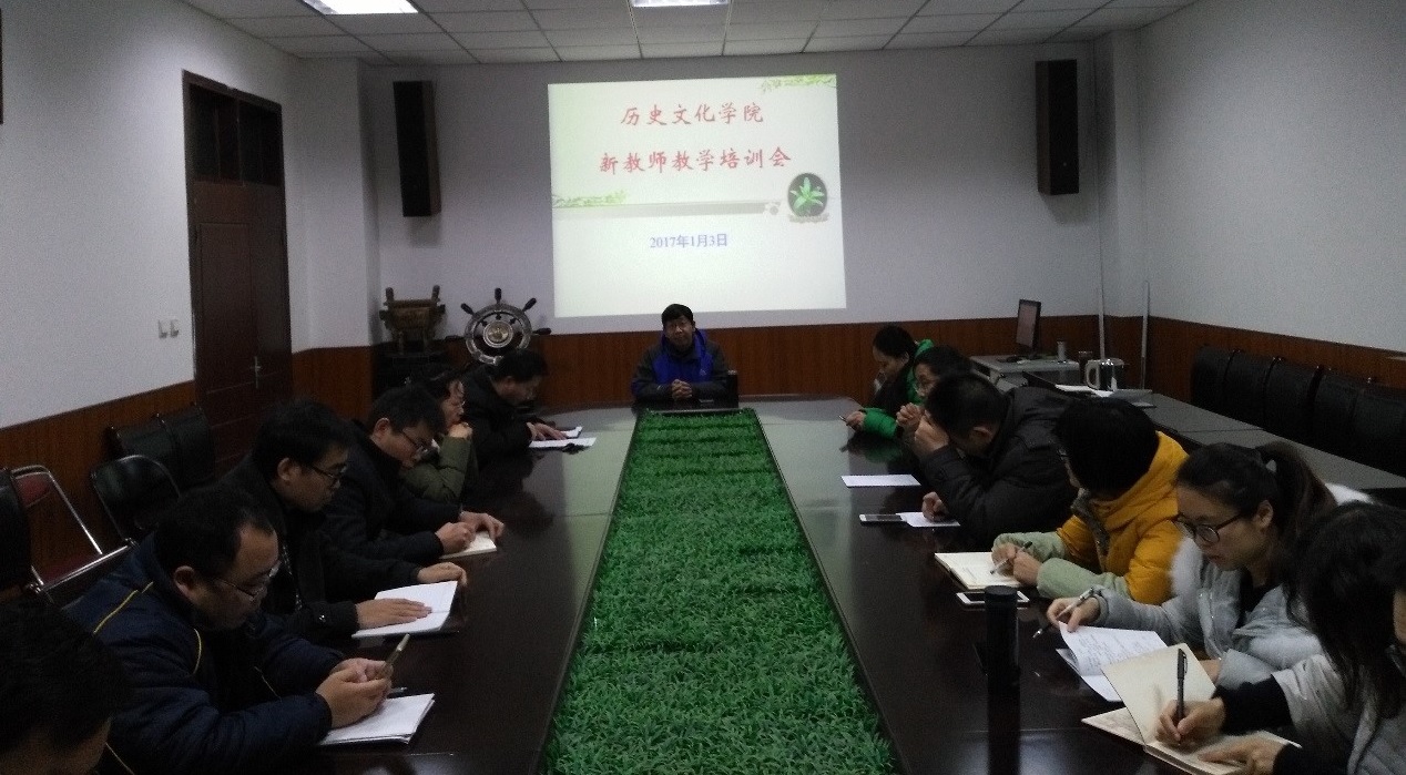 2017年1月3日上午,新年伊始,历史文化学院新教师教学培训会在学院二楼小会议室召开,学院领导、教法专家、督导专家、各系主任及近两年入职的新教师等参加会议。会议由副院长鞠明库教授主持。