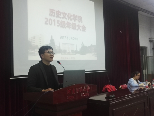 3月29日晚,为多视角分析学生学习与生活,历史文化学院于学苑餐厅多功能报告厅召开2015级年级大会。2015级辅导员吉喆、马田园及2015级年级全体同学参与本次活动。