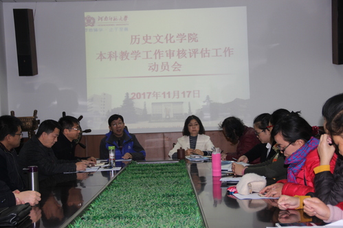 副院长鞠明库对审核评估工作做了具体安排部署。他对《历史文化学院本科教学工作审核评估工作方案》做了说明,宣读了学院评估工作领导小组名单和各小组组织机构及主要职责,就整个工作进程作了安排。