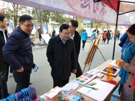 开幕式结束后,各位领导老师来到公寓文化街与同学们一起参与活动。李雪山副校长在学生讲解的引导下,逐一参观参观了各个摊位,并同负责的同学亲切交流。紧接着,领导老师与同学们一起在同室情深,纸属于你的展板前合影留念。随后,活动正式开始,同学们踊跃参加,通过你来笔划我来猜、你来哼歌我来猜,考验了室友间的默契,通过诗词问答和历史知识竞赛,考察了室友共同的学习成果。最终活动成功举行,丰厚的奖品被领取一空。