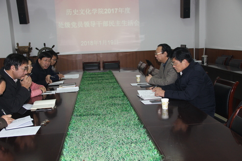 2018年1月19日上午,历史文化学院2017年度党员处级领导干部民主生活会在学院二楼会议室举行,校党委书记赵国祥亲临指导,校党委组织部负责人陪同参加。