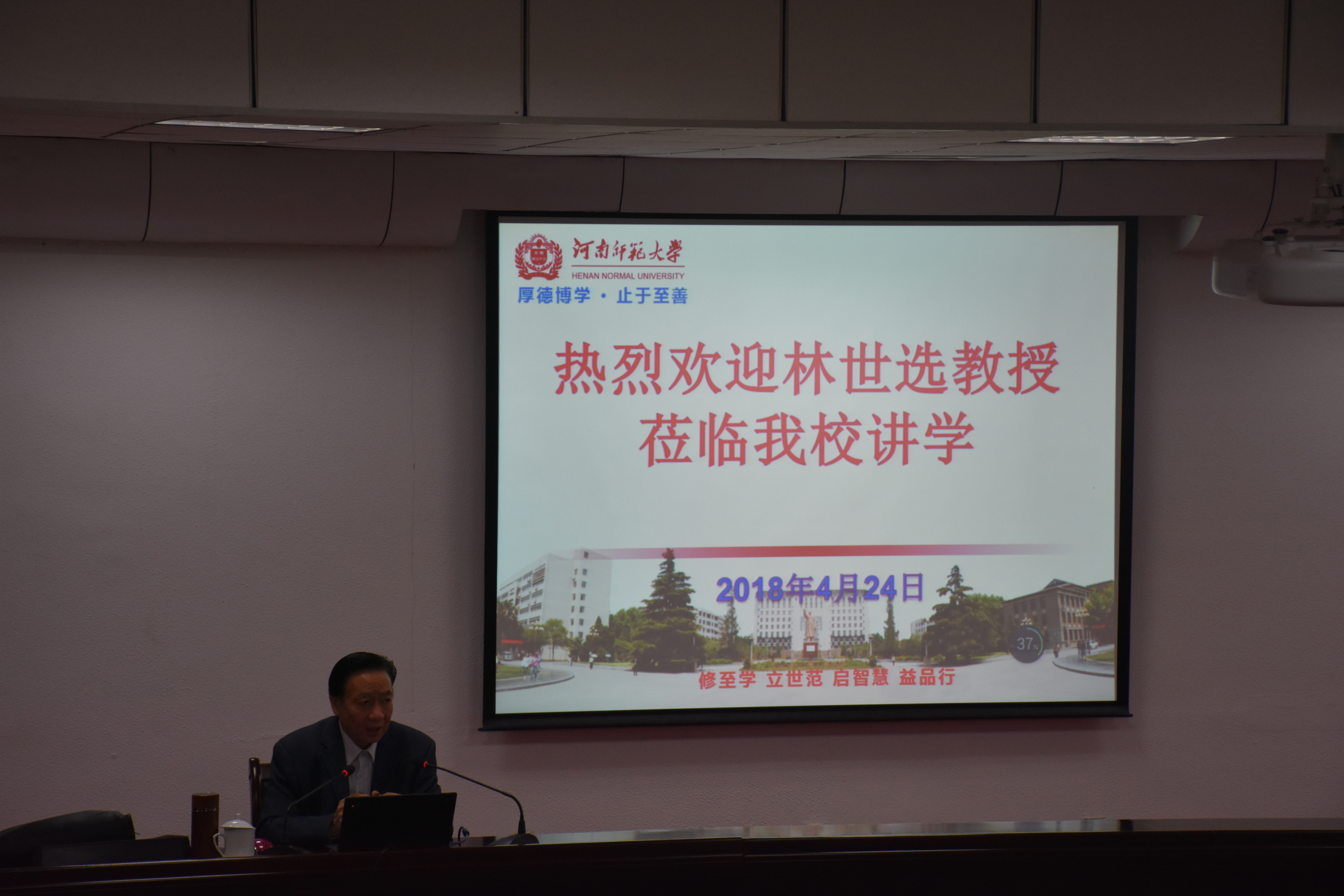 2018年4月24日下午,郑州轻工业学院林世选教授应我院邀请,在勤政楼第四会议室作题为“现代大学精神与大学生全面发展”的学术报告。报告由巨永明院长主持,张壬副书记、李峰副院长及相关专业师生百余人聆听了此次报告。