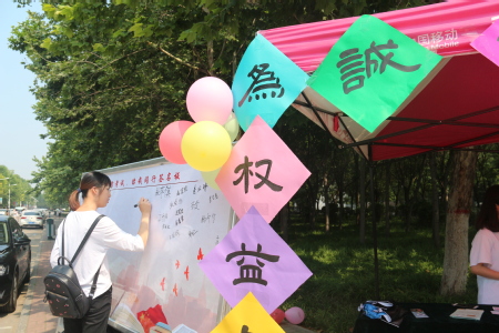 为更好响应学校诚信校园的倡议,肃清不良考风,历史文化学院学生会生活权益部、学习部、志愿服务部三部门于6月14日下午在东校区餐厅门前共同举办了“诚信风采,瞻梦未来”诚信考试承诺签名活动,同学们踊跃参与本次活动。