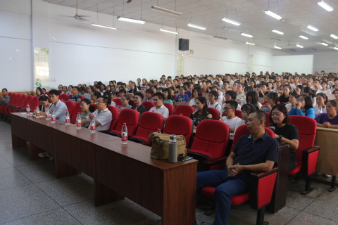 接着,教师代表王守谦老师发言,他声情并茂地给同学们讲述了几个中学生迈入大学生涯之后如何一步步实现梦想的故事。同时,王老师在学习和生活等诸多方面都给予新生中肯的建议。之后,我院老生代表、新生代表也相继上台发言,分别交流大学生活的经验和感想。