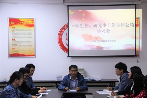 为明确团委学生会以学生为本的服务理念,防止学生会干部功利化、庸俗化倾向。108日晚,历史文化学院于院办107组织召开“《学生会、研究生会干部自律公约》学习会议”。院党委副书记张壬、2017级辅导员王若茜、2018级辅导员袁田出席会议,全体2018届团委学生会学生干部参加会议。