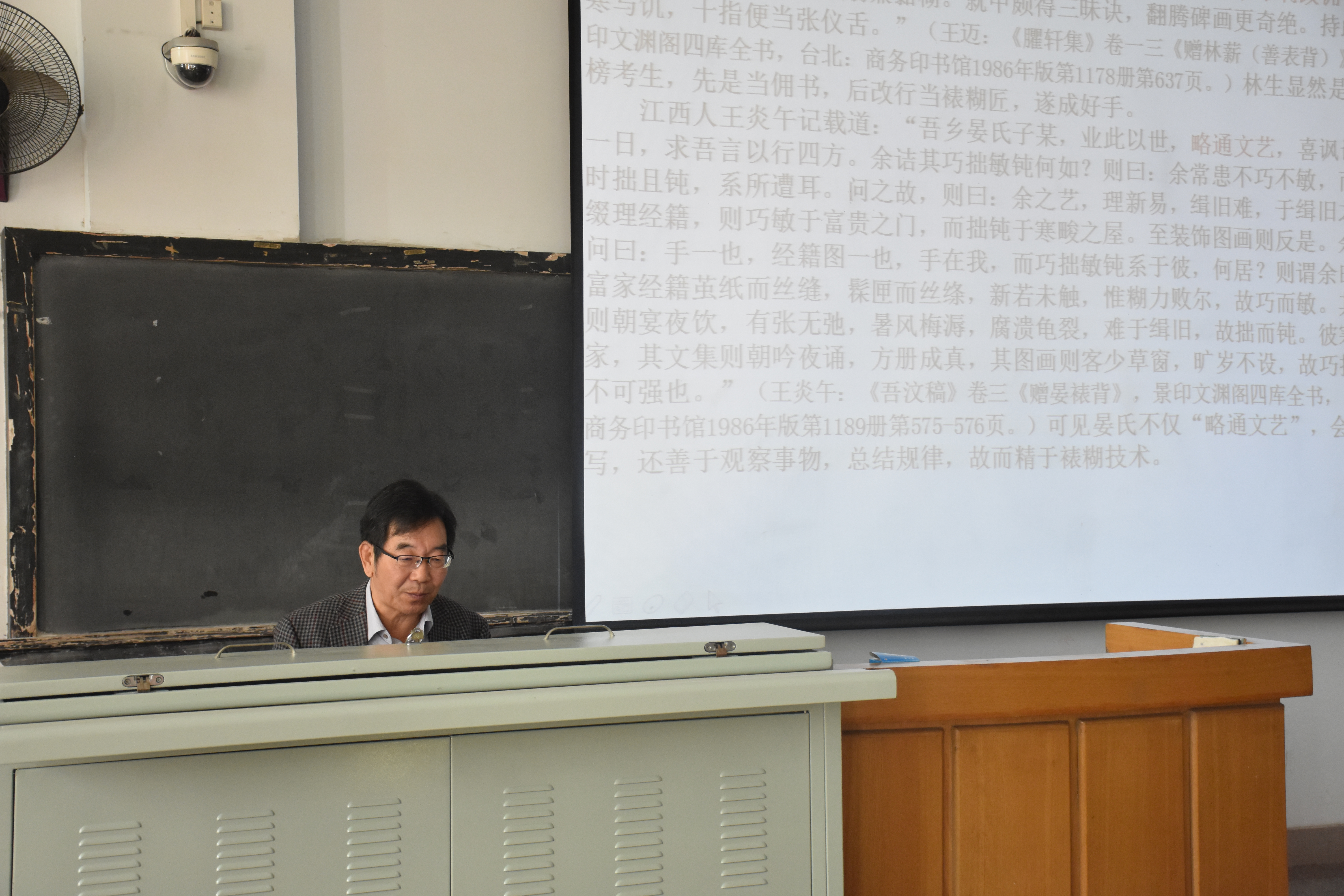 2018年10月11日上午,应学院邀请,博士生导师、国家社科基金会评专家、原《河南大学学报》主编程民生教授莅临新554-301教室,作题为“宋代工匠的文化水平考察”的学术报告。讲座由李峰副院长主持,相关专业教师及学院本科生、研究生200余人聆听了此次讲座。