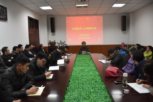 为深入学习贯彻习近平总书记在全国教育大会上的重要讲话精神,切实把思想和行动统一到党中央决策部署上来,12月4日下午,我院在学院二楼会议室举行全国教育大会精神宣讲会,学院党委书记巨永明、院长苏全有面向全院教师全面深入系统地解读了全国教育大会精神,并紧密结合学院实际,部署贯彻落实工作。