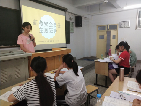 由于今年高考与端午假期冲突,为保障高考秩序正常,警惕违法犯罪行为,近日,我院2018级辅导员袁田和李岩在2018级开展了高考安全责任主题班会。本次主题班会由袁田老师主讲。