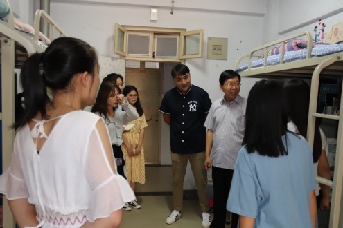 在此期间,张壬副书记、李峰副院长和李文平副院长叮嘱同学们与舍友团结起来,共同进步,让大学四年没有遗憾,争做“学霸宿舍”。鞠明库副院长则走进男生寝室,与同学们畅谈理想,鼓励同学们把握大学四年时光,做合格的师大人。