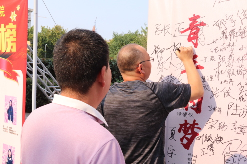 为进一步培养学生的爱国情,高效完成学院特色迎新工作,我院开展礼献建国七十年签名与采访、“绿色通道”和“糖果心愿便利贴”等特色迎新活动。其中,礼献建国七十年签名尤其引人注目,各位学生及其家长认真地在海报上写下姓名与祝福语,并积极接受采访,表达对祖国的赞美和歌颂,场面热烈。97日早,我校党委书记赵国祥在我院负责人的陪同下在迎新点视察迎新工作,对我院迎新工作的开展情况进行询问,并对我院领导以及迎新工作的开展效果予以高度评价,同时,我院领导老师积极与其探讨教学工作,受益良多。96日起,我院党委书记巨永明、党委副书记张壬、副院长鞠明库,副院长李峰、副院长李文平以及各年级辅导员于迎新点看望工作人员,关怀与指导其各项迎新工作的开展。98日下午,我院迎新工作顺利完成。