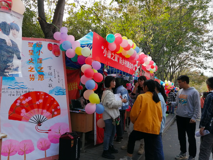 19日上午8点,招新正式开始,各部门负责人相互配合协作,不辞劳苦,推进摊位布置、引导新社员、收取会费、收存照片等一系列工作有条不紊地进行着。百团大战期间,人潮涌动,热闹非凡,为吸引我校学子注意,摊位摆放着精彩的活动照片以及视频剪辑,同时,为了更好地展现本社团的实践性与丰富性,负责人积极向来往学子介绍特色活动,包括寒暑假下乡、下乡成果展、日常支教、新农村调研、凤凰山拉练、生日月以及特殊机构励志营的一些日常活动。20日晚7点,两天的招新活动接近尾声。在对报名表及摊位卫生进行整理和打扫后,全体负责人在原地开了一个短暂会议,汇报了基本工作,据统计,本次招新共收纳社员492人,达到历史新高。