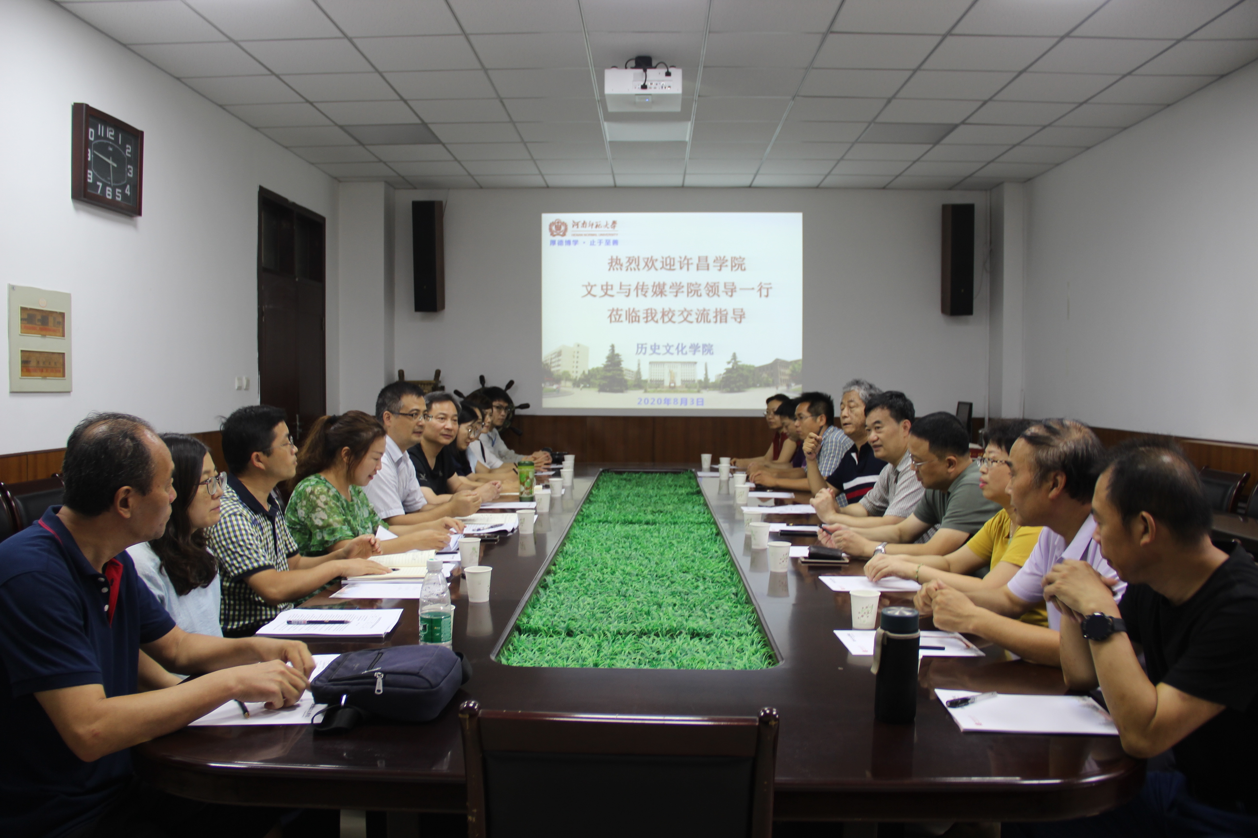 苏全有院长对许昌学院来宾表示热烈欢迎,并先后与文学院院长李永贤就伟德官网下载苹果版历史文化学院和文学院的历史沿革、学科建设、教学科研等方面进行了简要介绍。巨永明书记则重点就我院党建和学生工作的特色向来宾做了说明。许昌学院文史与传媒学院党委书记许涛、院长尤建设也先后介绍了本院的党建工作、历史沿革、学科建设等相关情况。