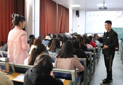 活动伊始,袁田老师用幽默风趣的话语引出此次文化沙龙的主题。随后,袁老师通过粉笔字展示、毛笔作品展示、现场指导、师生互动等形式,向同学们详细讲解什么是“方块字”,何为“笔法”、“字法”、“章法”,怎样提高书写水平,以及规范书写的重要性等问题。同学们积极执笔练习,并踊跃向老师提出疑问。现场气氛活跃,师生热情高涨。最后,活动在同学们热烈的掌声中落下帷幕。
