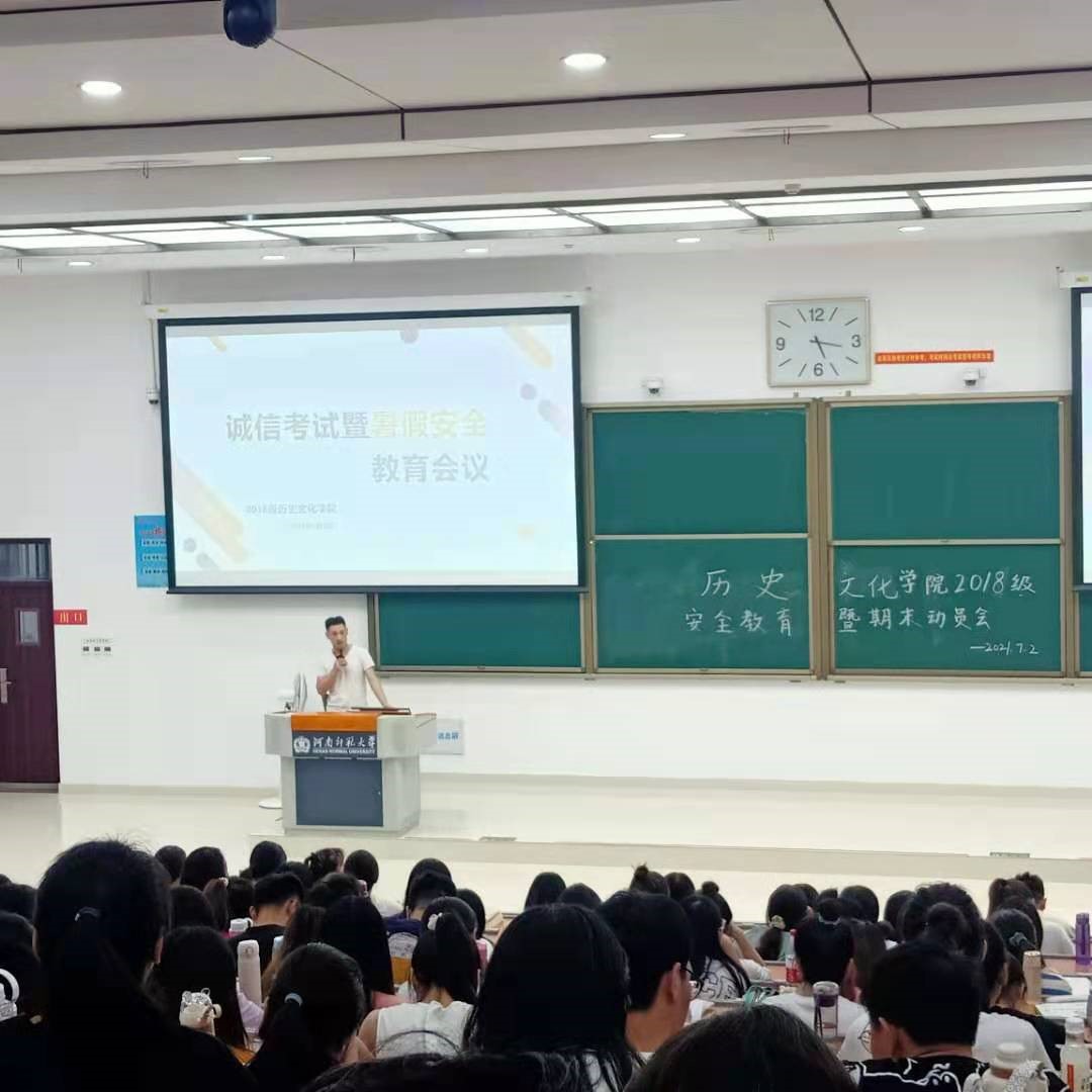 为端正学生考试态度,加强我院考风、学风建设,培养学生暑假安全意识,7月2日,历史文化学院2018级于文昌楼302室开展诚信考试暨暑假安全教育会议,会议由2018级辅导员袁田、张少羽老师主持展开,2018级全体同学参加。