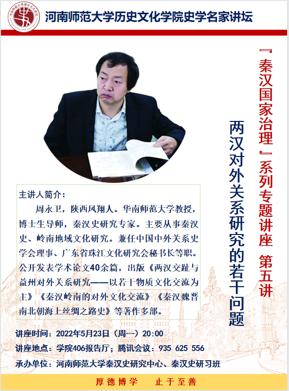 “秦汉国家治理”系列讲座通知:华南师范大学周永卫教授将莅临学院讲学