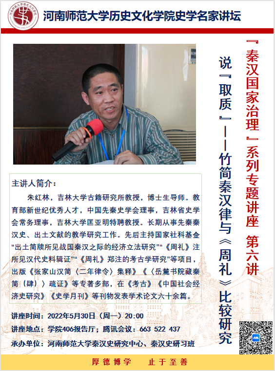 “秦汉国家治理”系列讲座通知:吉林大学朱红林教授将莅临学院讲学