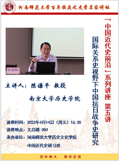 讲座通知:“中国近代史前沿”系列讲座第五讲:南京大学陈谦平教授将莅临学院作学术讲座