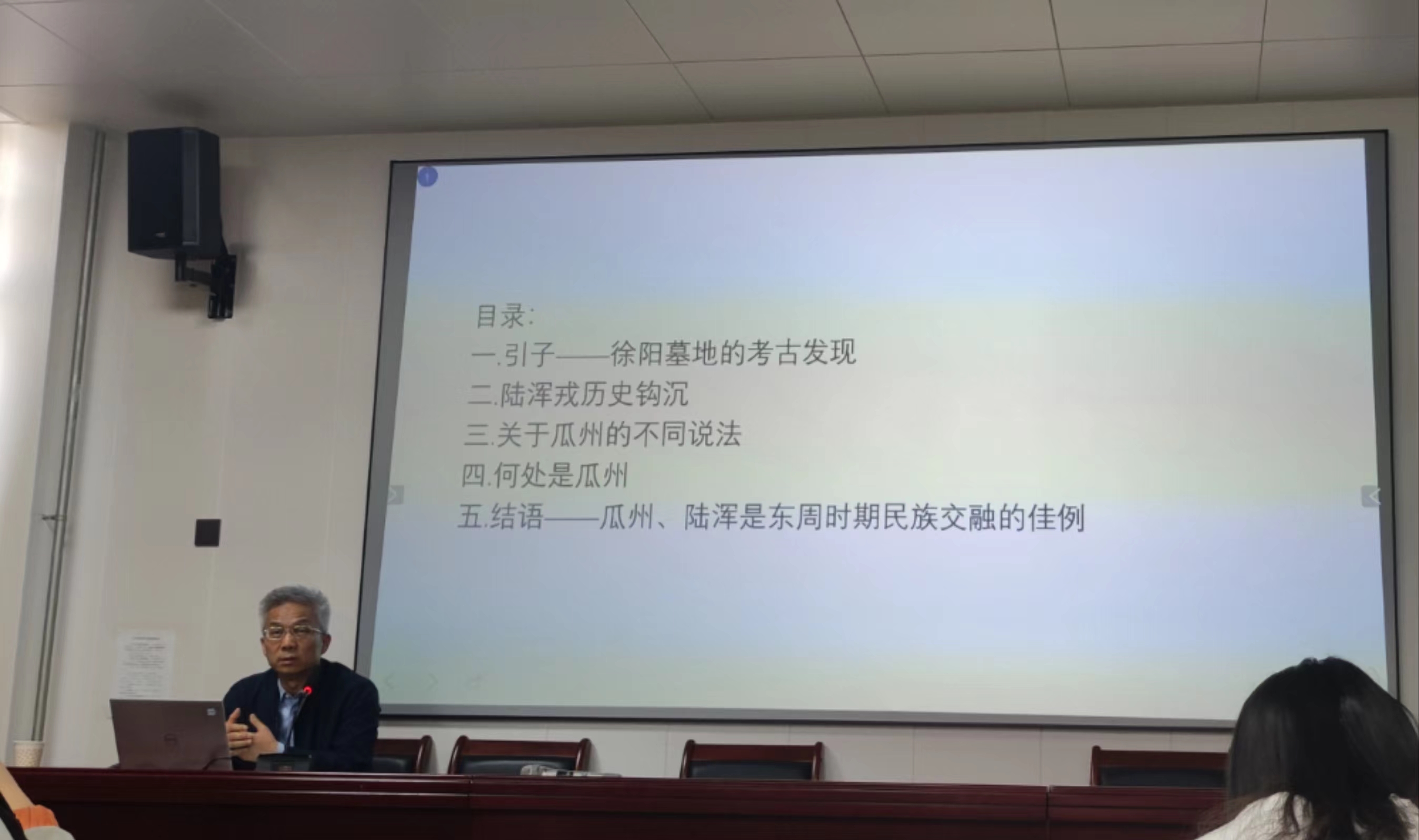 讲座中,史党社教授从历史文献、考古材料入手,结合现有理论研究成果,在对瓜州的位置进行初步判断的基础上,又以东周墓地考古为线索,重点考察了少数民族的族群迁徙,对瓜州的地域分布进行更为深入的判定。在互动环节,史党社教授对与会师生提出的问题给予了详细的解答。