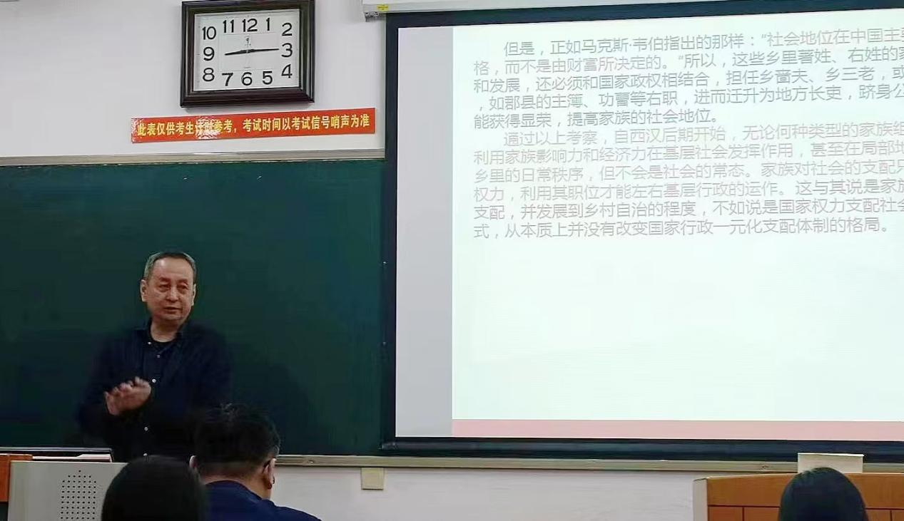 讲座中,王彦辉教授首先对“周秦变革”的学术观点做出概括性的理论阐释;继而从宏观层面对秦汉时期中央、地方官僚机构的设置与职权,进行了严谨的学理分析;最后从传世印章和碑刻资料入手,论证“单”是以宗族血缘为基础、以里为单位的民间组织,并没有脱离国家官僚体体制的约束,具体而微地对家族组织与国家权力的关系进行了深入、细致的梳理。在互动环节,王彦辉教授对师生提出的问题给予了详细的解答。