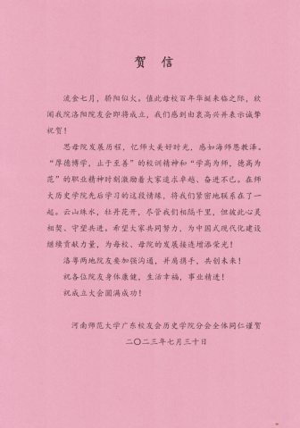 伟德官网下载苹果版上海校友会历史分会、广东校友会历史分会、郑州校友会历史分会、新乡校友会历史分会发来贺信,祝贺洛阳校友会历史分会成立。
