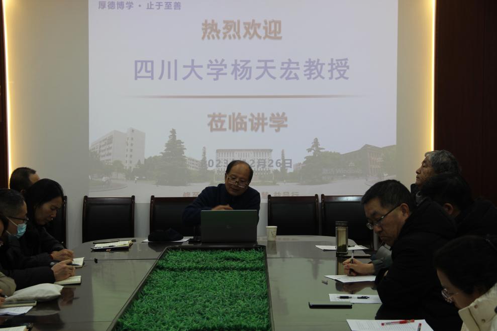 当天,杨天宏教授还以《不断革命的肇端:从‹临时约法›对民国政体的修改说起》为题,为我院师生做了一场精彩的学术讲座。四川大学校友、我院退休教师李永芳教授对杨天宏教授的讲座进行了高度评价。