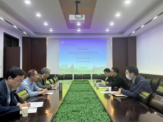 2024年4月16日下午,我校社会科学处处长段勃、副处长张继汝一行莅临历史文化学院,对2024年度国家社科基金项目论证和申报工作进行调研和指导。历史文化学院院长苏全有、副院长王守谦和科研工作秘书李小白参加了座谈交流。