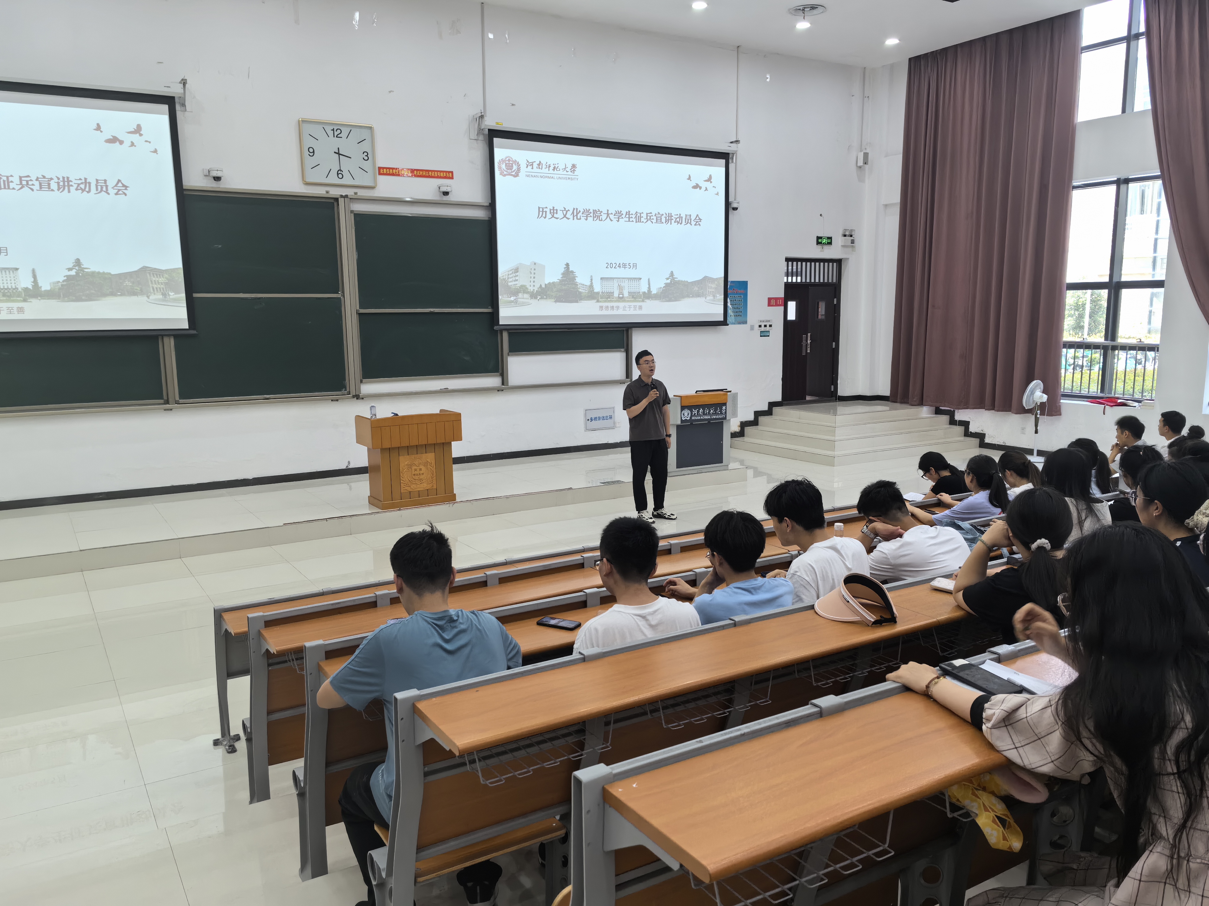 为鼓励毕业生积极参军入伍,进一步激发同学们的爱国热情和国防意识,5月15日下午,历史文化学院于文昌楼127教室召开征兵宣讲会,2020级全体毕业生参加本次会议,会议由辅导员庞振康主持。