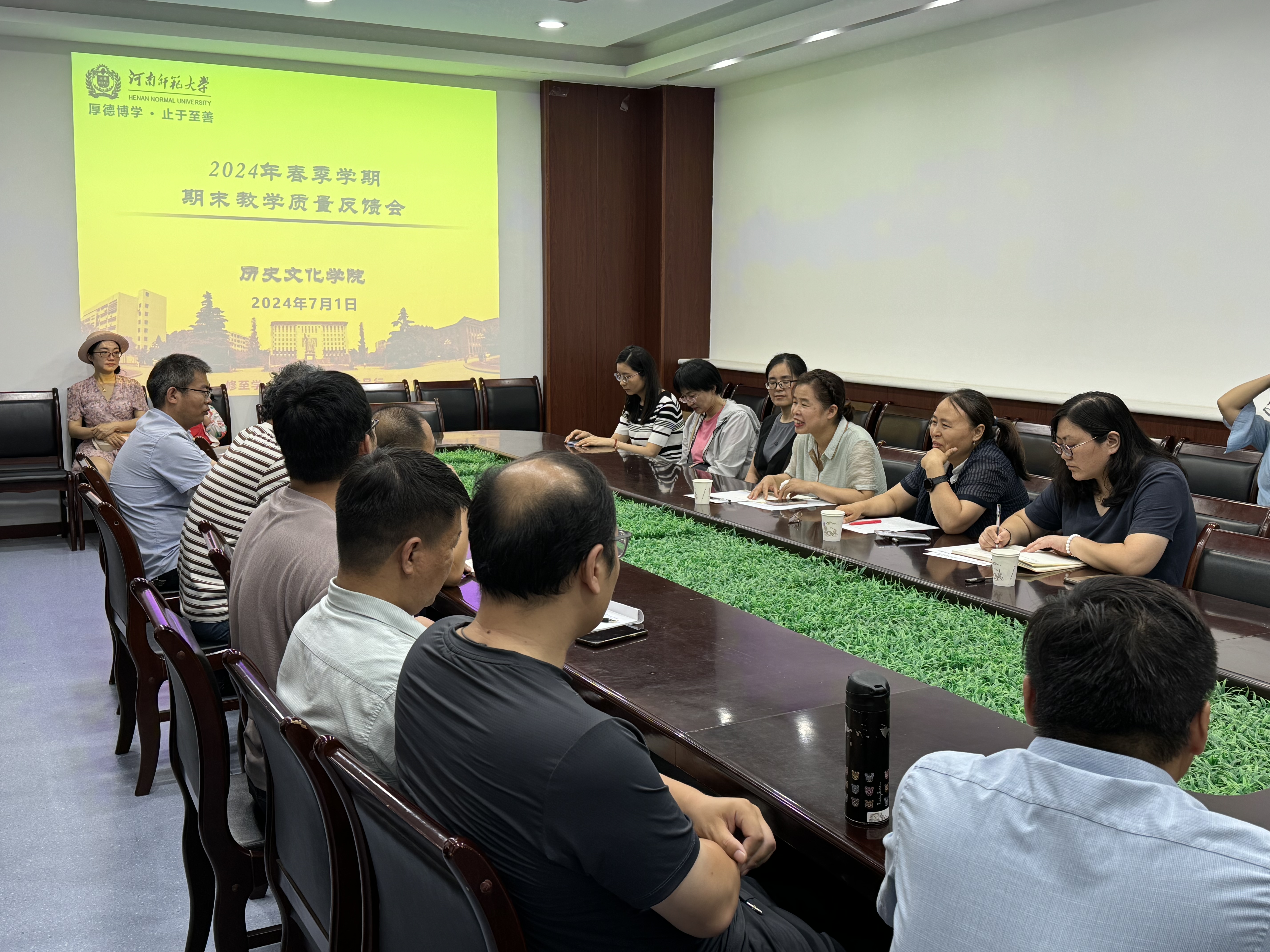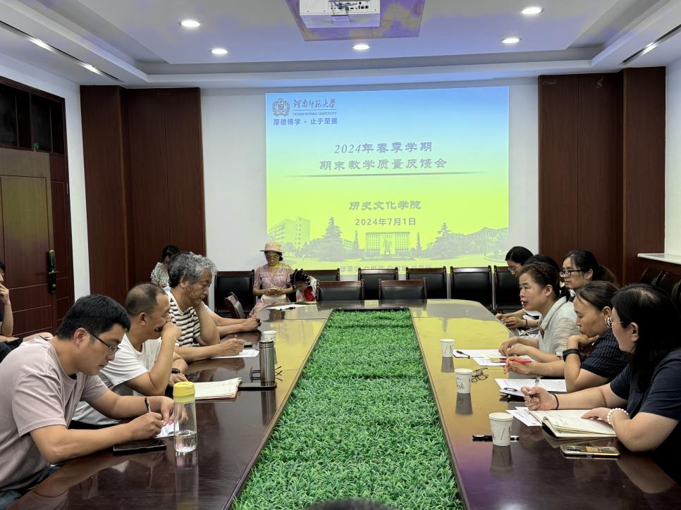 2024年7月1日下午,历史文化学院在学院205会议室召开2023-2024学年第二学期期末教学质量反馈会。会议由王守谦副院长主持,基层教学组织负责人、教师代表和历史学、世界史、文化产业管理和考古学4个专业的本科生代表约60人现场参会。苏全有院长全程听取了教学质量反馈情况。