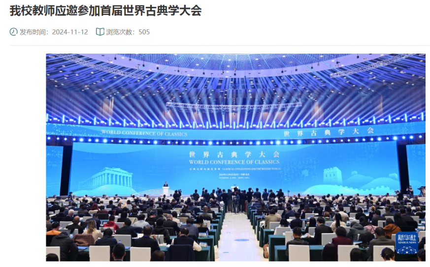 学院鼓励教师和学生参加境内外学术会议,开展学术交流,扩大学术影响力。2024年,历史文化学院教师外出参加境内外学术会议共81场次,研究生参加境内学术会议3场次。1人被选为中国英国史研究会理事,1人被选为中国先秦史研究会理事。116日至8日,首届世界古典学大会在北京开幕。国家主席习近平向首届世界古典学大会致贺信,中共中央政治局委员、中宣部部长李书磊出席开幕式宣读贺信并致辞,30多个国家和地区的400多位嘉宾与会。我院李雪山教授应邀主持“古典语文与古典学传统”分论坛并作了“甲骨文与中国古典学关系”的主题报告。