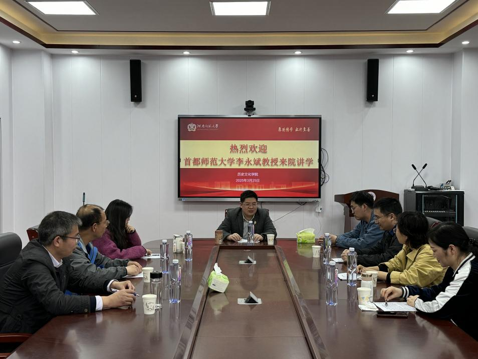 2025年3月25日和26日,首都师范大学历史学院教授李永斌应邀莅临历史文化学院学院讲学。讲座由历史文化学院副院长王守谦主持,学院部分教师、研究生和本科生到场聆听并参与交流。