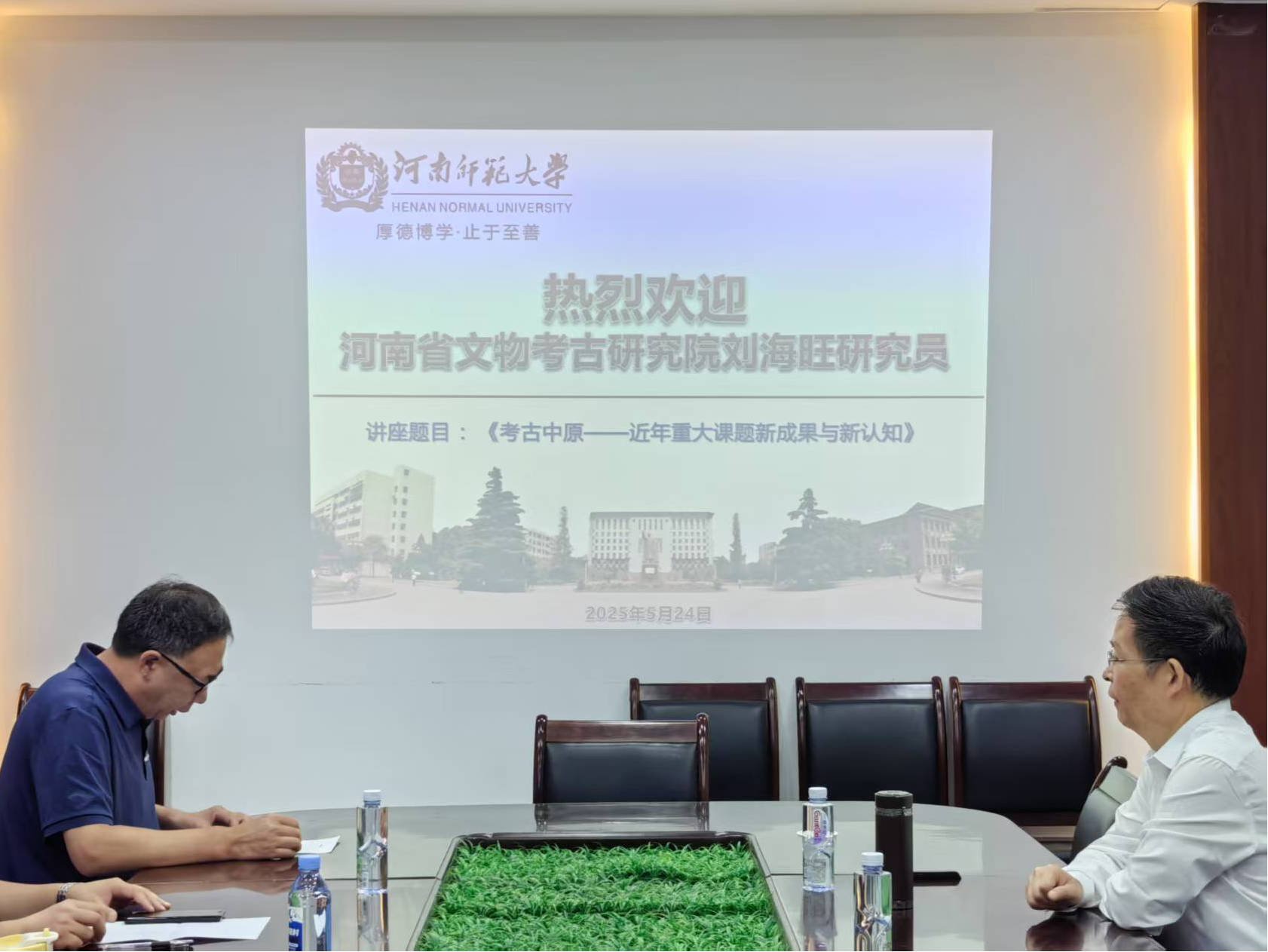 2025年5月24日,河南省文物考古研究院院党委书记、二级研究馆员刘海旺应邀莅临历史文化学院讲学。讲座由历史文化学院党委书记李峰教授主持,部分教师、研究生及本科生到场聆听讲座。