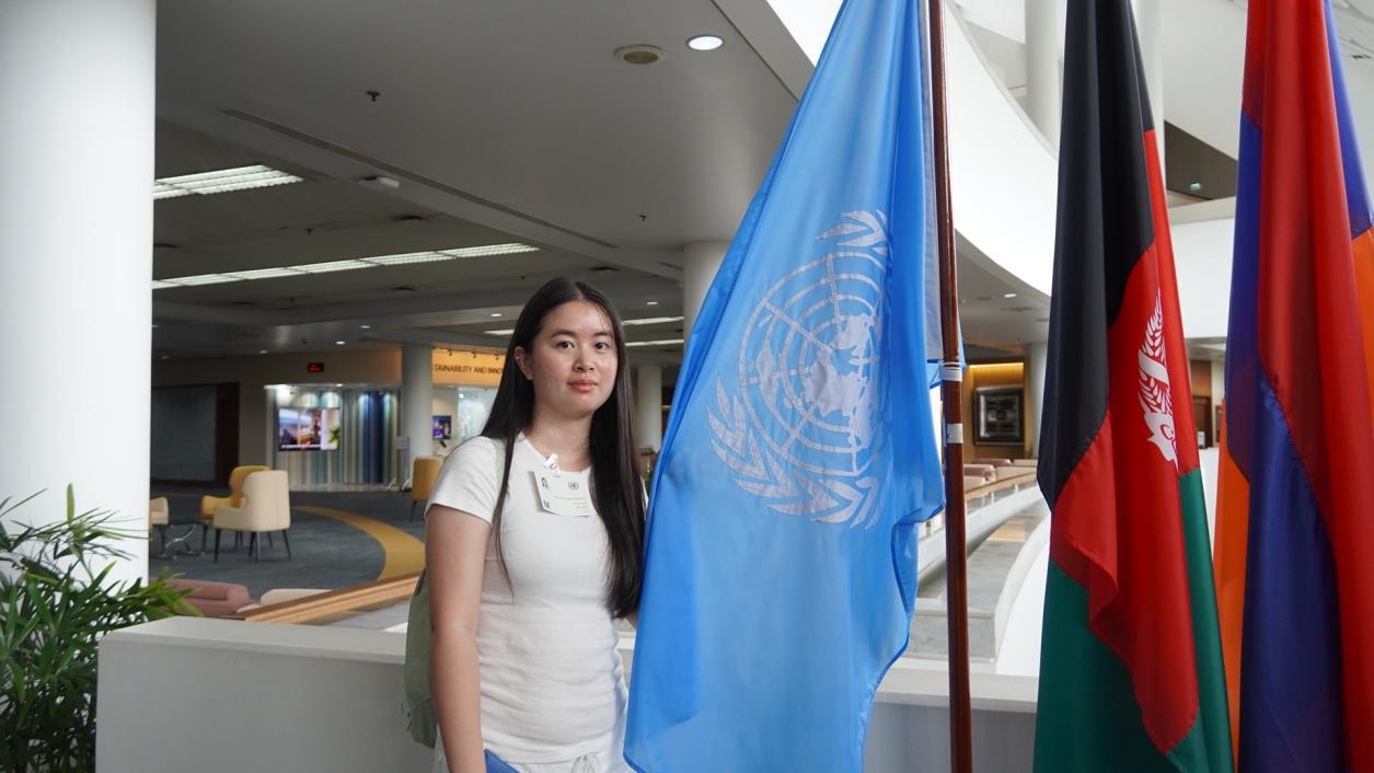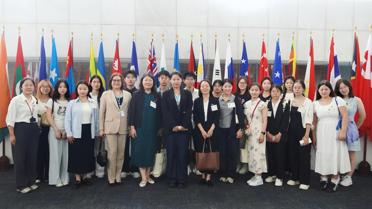 研学首日,同学们来到位于曼谷的联合国亚太经社会(UN ESCAP)总部,由联合国官员引导,参观了会议大厅、可持续发展成果展示区。在专题讲座期间,联合国官员详细介绍了UN ESCAP在协调亚太地区各国落实SDGs、应对气候变化、促进区域经济合作等方面的工作。