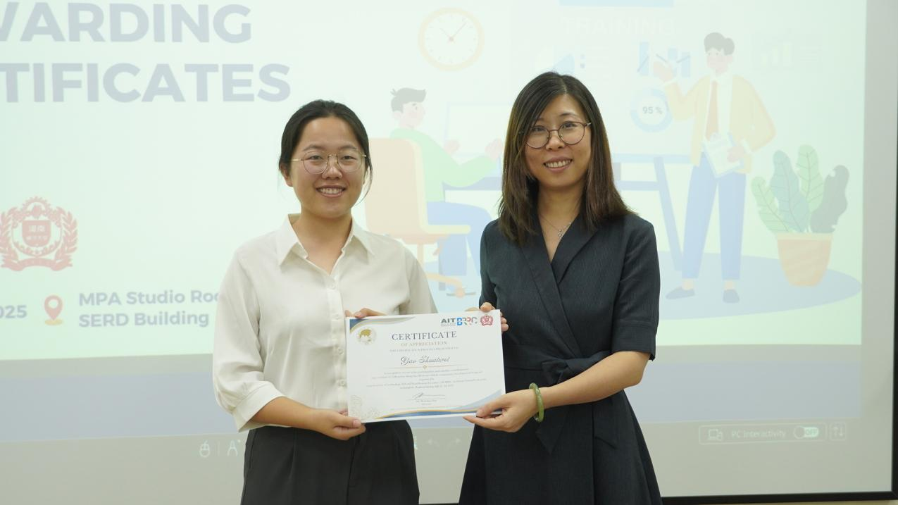7月25日晚,闭幕式上,各组学生代表汇报了研学期间完成的“可持续发展创新方案”,展现了跨文化协作的成果。AIT校方为伟德官网下载苹果版学生颁发研学证书,薛文超博士在总结中高度评价中国学生的求知欲与创新思维,期待两校未来开展更深入的科学研究合作与学生交换项目。