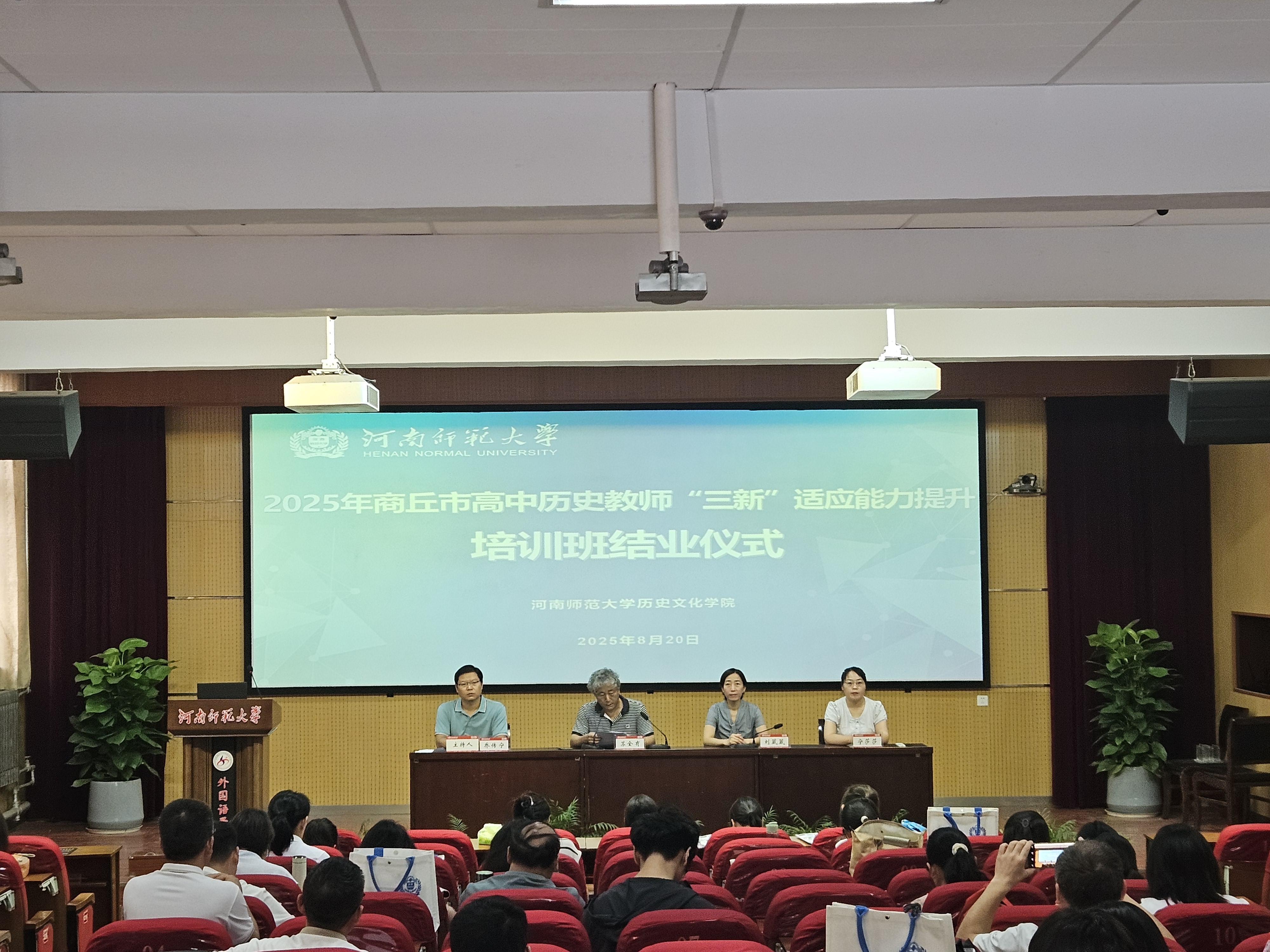 8月20日上午,2025年商丘市高中历史教师“三新”适应能力提升培训班在外国语学院学术报告厅举行了结业仪式。结业仪式由伟德官网下载苹果版历史文化学院乔传宁博士主持,伟德官网下载苹果版历史文化学院院长苏全有、副院长刘葳葳、培训团队工作人员以及培训班全体学员70余人参加了结业仪式。