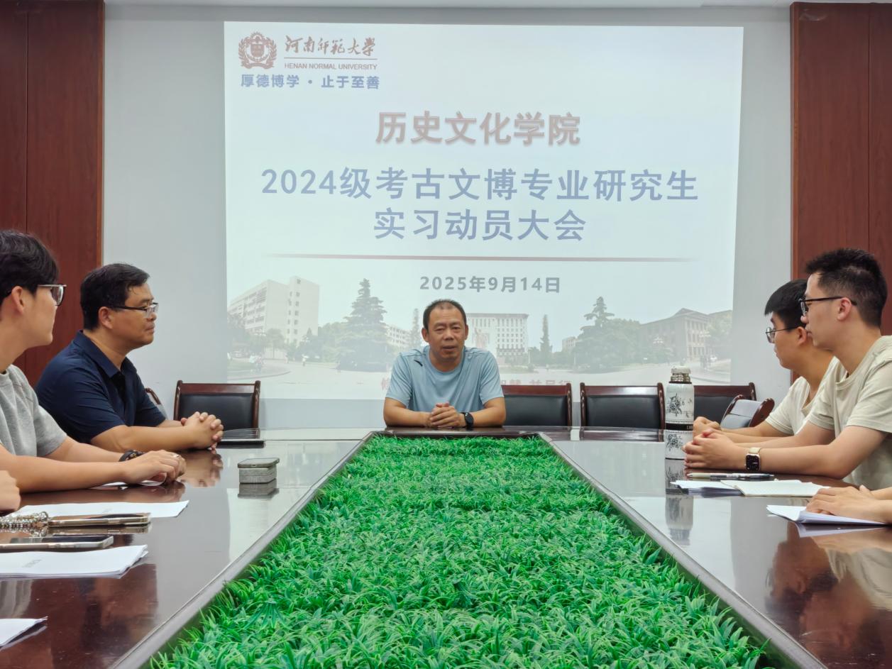 2025914日,历史文化学院召开2024级考古学、文物和博物馆专业硕士研究生实习动员会。研究生秘书鲍颖建主持会议,全体实习研究生参加了实习动员会。
