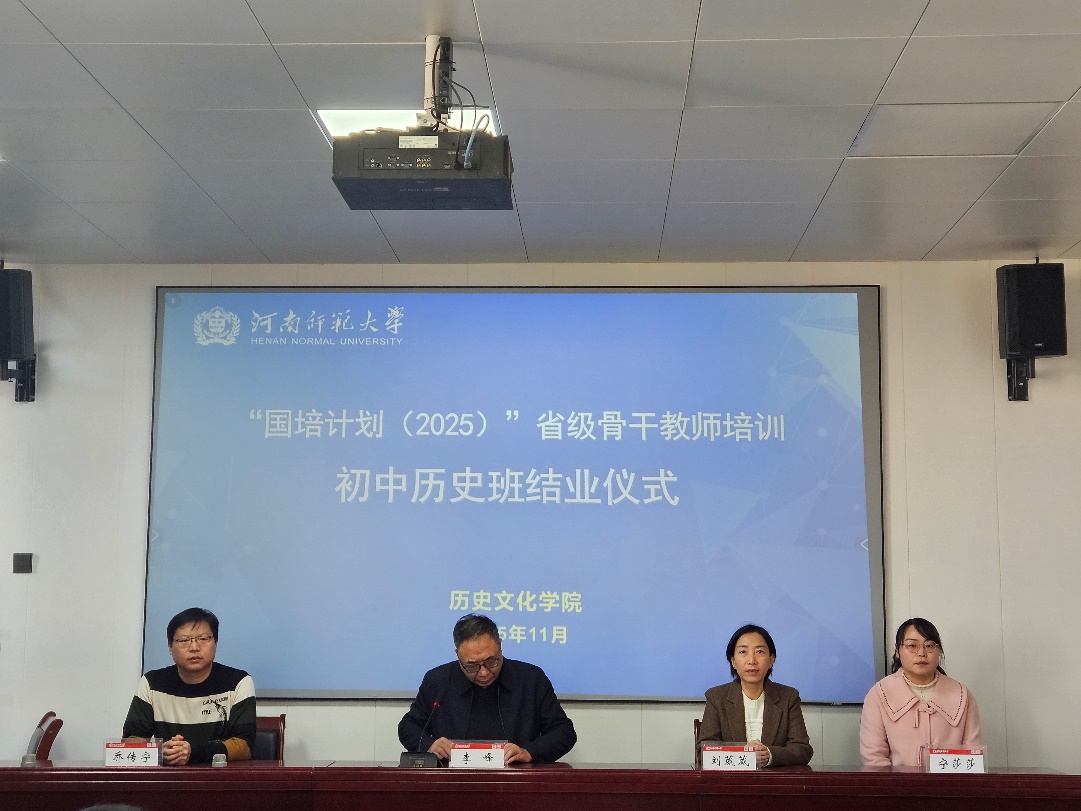 11月19日上午,“国培计划(2025)”省级骨干教师培育初中历史班在历史文化学院406报告厅举行了为期10天的线下培训结业仪式。