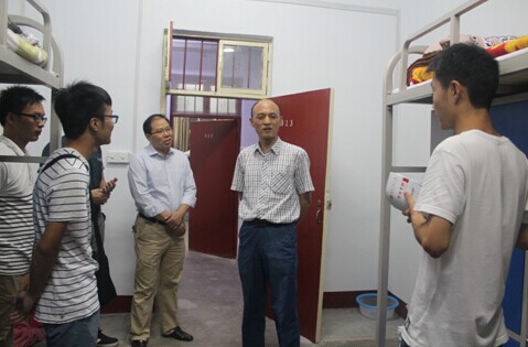9月9日晚,环境学院党总支书记包卫忠、院长周建国、副书记谢友海、副院长潘峰以及各年级辅导员一行到新生宿舍走访慰问,并对新生的到来表示热烈欢迎。走访过程中,学院各领导悉心问候学生,与学生们进行亲切的交流与谈话,鼓励同学们能尽快的融入到宿舍这个大家庭,并希望大家在生活以及学习上互助互爱,在环境学院的大家庭中健康快乐的成长。