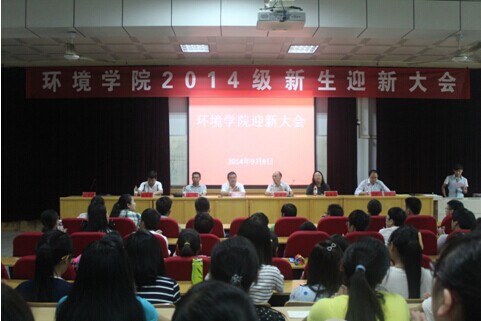 9月9日上午,环境学院于党校教室召开2014级新生迎新大会,会议由院党总支副书记谢友海主持,环境学院党总支书记包卫忠、院长周建国等党政领导以及学院教师代表共同出席了此次会议。会上,周建国院长发表了热情洋溢的迎新致辞,并鼓励同学们珍惜大学美好时光,秉承“厚德博学,止于至善”的校训,做德才兼备、全面发展的人才。教师代表王学锋教授就如何充实、高效度过四年的大学生活为主题给同学们指点迷津,并勉励同学们要树立目标,充实度过四年时光。原学院学生会主席2011级环境科学专业吕晶同学以及2014级新生彭硕同学分别作为老生、新生代表发言。