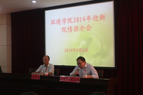9月6日下午,环境学院在化学南楼二楼会议室召开2014年迎新院情推介会。周建国院长为大家介绍环境学院的基本概况,展示了环境学院的强大实力和巨大的发展潜力,并一一对新生和家长们的疑问进行现场解答,使新生和家长加深了对专业的了解。最后,周院长勉励同学们进入大学要丰富自己课余生活,让大学不留遗憾。