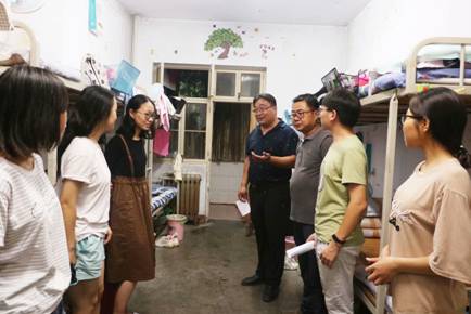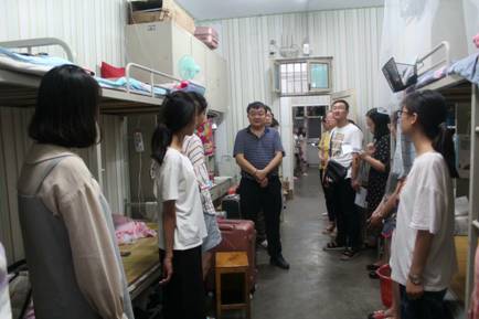 9月8日晚,我院党总支书记马新峰、院长蒋凯分别带领班子成员、班主任、2019级辅导员前往学生宿舍亲切慰问新生。