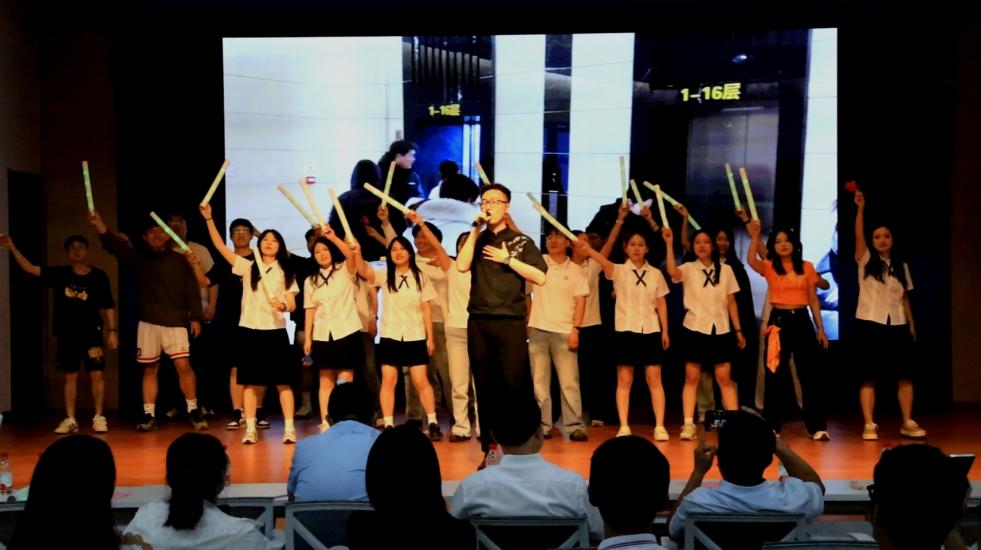 汇演在开场舞《别叫我达芬奇》的动感节奏中拉开帷幕,瞬间点燃现场气氛;歌曲《再遇见》以温暖的曲调勾勒出友谊最好的模样;舞蹈《校园吉特巴》展现了当代大学生校园美好的生活与情感;舞蹈《不要小看大肚腩》以诙谐幽默的舞姿和热情的现场互动,赢得一次次掌声;研究生节目《歌曲串烧》唱不尽青春故事,诉不完岁月深情。中场互动环节,每位院领导现场抽取了若干幸运观众,为他们送去了学院精心准备的幸运礼物。下半场,乐队的精彩表演将现场的气氛推到了制高点;歌曲《我们的明天》唱出了从懵懂到成熟、从相遇到离别的美好回忆;当《出现又离开》旋律响起,全场点点荧光棒化作星海,毕业生用欢呼声与掌声作别校园时光。